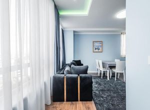 Ky apartament luksoz ndodhet ne zemer te qytetit te Durresit, prane Bashkise dhe bulevardit "Epidamn". Apartamenti ndodhet ne katin e 11 te nje pallati mjaft cilesor dhe ka pamje fantastike nga deti dhe porti i Durresit. Apartamenti organizohet ne nje sallon modern te mobiluar me stil modern dhe ngjyra relaksuese te ndricuara mire gjate gjithe dites, kend gatimi dhe ngrenieje, dhome gjumi komode per tre persona dhe nje tualet qe eshte nje nga pikat e forta te prones, bazuar ne vleresimet e qiramarresve.